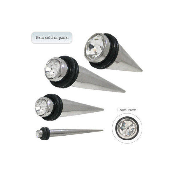 Pair of Ear Stretcher Taper Surgical Steel Spike w/ CZ Gem
