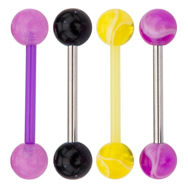 4pcs Multi Pack Barbell UV 2 Surgical Steel 2 Bioflex shaft Tongue Rings 14G