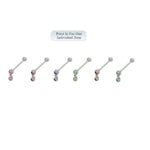 Barbell Tongue Ring Surgical Steel with Dangle Double Jewel 14G