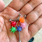 Barbells Tongue rings Surgical steel With Soft Silicone spikes 5 Pack 14 Gauge 16mm long silicone top size 8mm Bottom ball 5mm steel