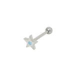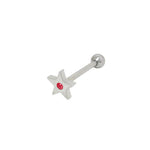 Flat Head Jeweled Star Tongue Ring DESCRIPTION This is a lovely barbell tongue ring with a 316L high-grade surgical steel shaft and a flat head star design with a jewel....