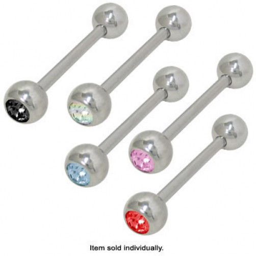 This is a jeweled high polish titanium straight barbell tongue ring made with Pure TITANIUM 6ALV-ELI (Grade 23) IMPLANT GRADE.