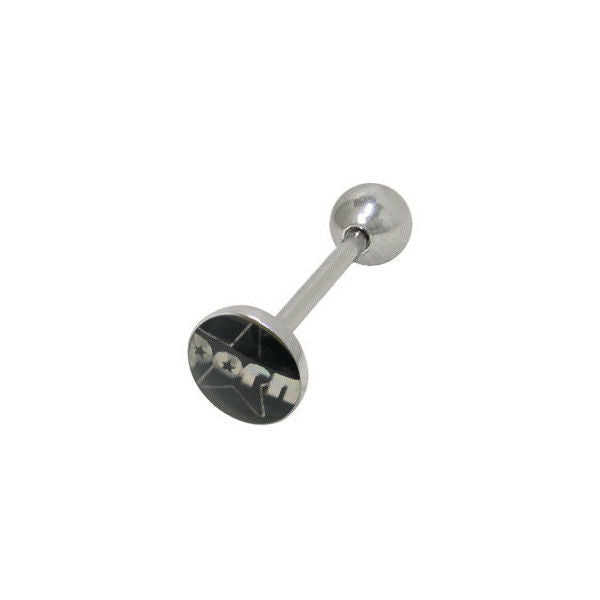 BODY JEWELRY ONLINE Holographic Porn Star Logo Barbell Tongue Ring DESCRIPTION This is a sexy holographic flat head straight barbell porn star tongue ring with the word Porn and star...