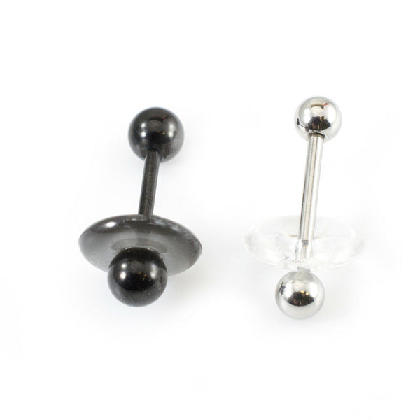 Pair of Doughnut Tongue Straight Barbells- Steel with Clear Doughnut and Black Anodized with Black Doughnut 14ga 5/8-16mm
