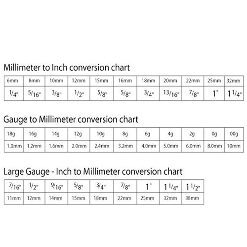 This tongue ring measures 14 gauge and 15mm - 5/8 of an inch.
