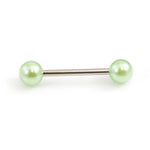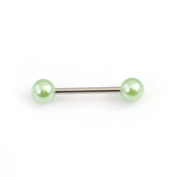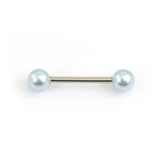 Tongue Barbell with Faux Synthetic Pearl Acrylic Designed Balls 14ga 15mm Length