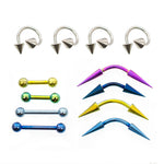 Package of 12 pcs Curve and Straight Barbells, Twister Rings 14g and 16g