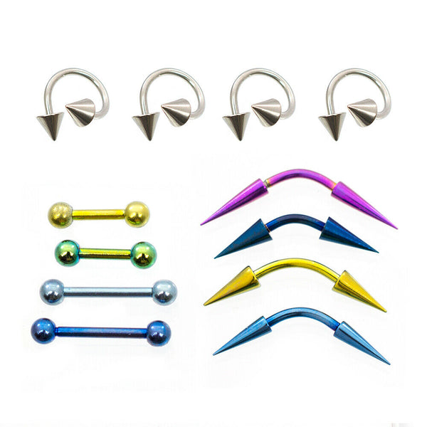 Measurement: Twister Ring 14g(1.6 mm), 6 mm spike length, 1/2" (12 mm), Curve Barbells 14g(1.6 mm) Different Length, Barbells 16g (1.2 mm) Different Length