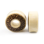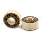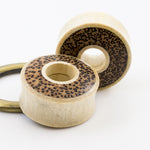 Pair of Ear Tunnels made of Crocodile Wood with Leopard Print Double Flared
