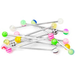 10 Industrial Scaffold Piercing Barbells with Colorful Acrylic Balls - 14ga 1.5" (38mm) 316L Surgical Steel
