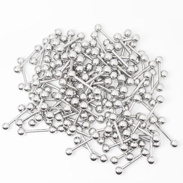 100pk. Straight Piercing Barbells - Perfect for Nipple Piercing 14G 1/2" (13 mm)