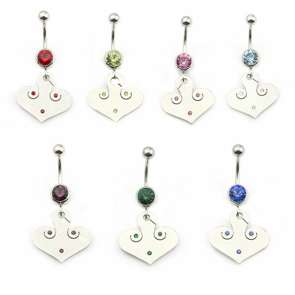 Belly Button Ring with Heart Dangle and Cubic Zirconia Stone 14g Measurement: 14g (1.6 mm), 10 mm Shaft Length, Top ball 4mm, Bottom Ball 8mm, Dangle 20 mm Smooth Surface and easy to use, Perfect for every occasion.