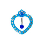 14ga-5/8" Reverse-Style Belly Ring Acrylic Heart Design with Clear Gems