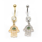 14ga Hamsa Dangle Belly Navel Ring - IP Coated Silver or Gold
