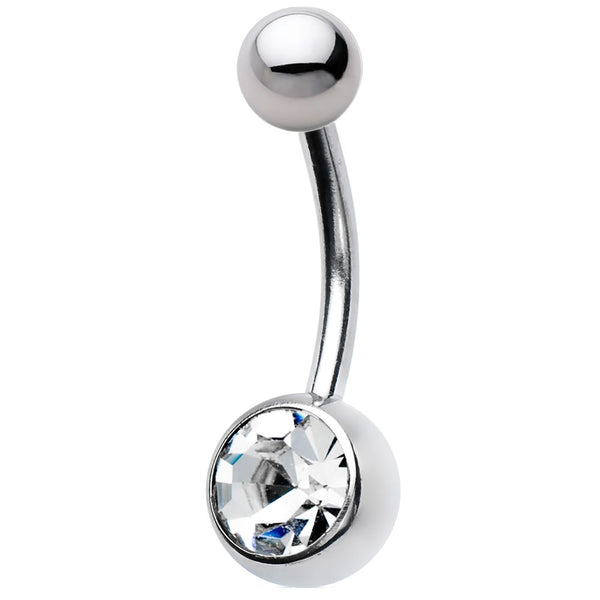 14ga Navel Ring Jeweled CZ High Polish 316L Surgical Steel - Sold Each