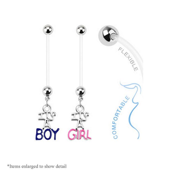14ga Pink or Blue Baby Gender Dangle Bioflex Pregnancy Navel Ring