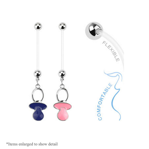 14ga Pink or Blue Baby Pacifier Dangle Bioflex Pregnancy Navel Ring