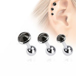 16ga Cartilage Barbells Tragus Rook Daith with Black CZ Gems - Pack of 3 - 316L
