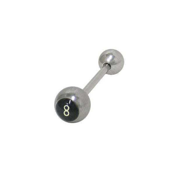 BODY JEWELRY ONLINE 8 Ball Logo Straight Barbell Tongue Ring DESCRIPTION This is a fun straight barbell tongue ring with a 316L high polish surgical steel shaft with a 6mm...