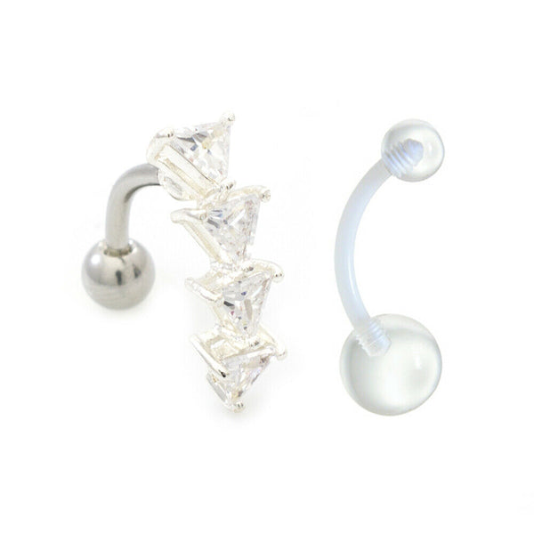 Belly Button pack of 2 one Triangle Cubic Zirconia Desig and a Retainer 14g