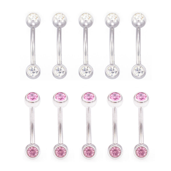 Belly Button Ring 14G -7/16"(11mm) Surgical Steel Double 4mm Jewel - 10 Pack