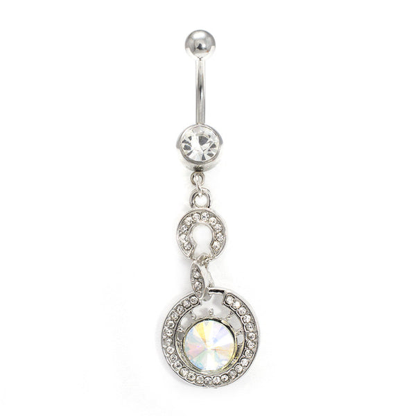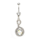 BODY JEWELRY ONLINE Belly Button Ring 14G Dangle Large Multi-Color CZ Gem Navel Piercing Jewelry DESCRIPTION This Is A Beautiful14G Belly Ring with Clear CZ Gems and Large Dangle round...