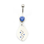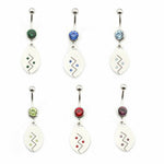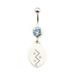 Belly Button Ring 14g Surgical Steel Dangling Tribal Etched Design CZ Jewels