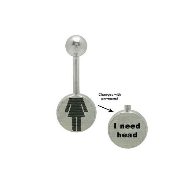 Belly Button Ring Logo Hologram Need Head - BodyJewelryOnline DESCRIPTION Make an impression and amaze your friends with this I Need Head hologram belly button ring. The hologram jewelry displays...