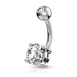 Belly Button Ring Non-Dangle with Prong Set Cubic Zirconia 14ga - Sold Each