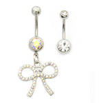 Belly Button Ring pack of 2 with multiple gem Bow Design and Basic with Cz 14g