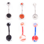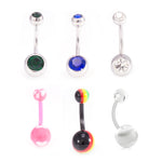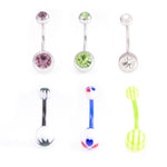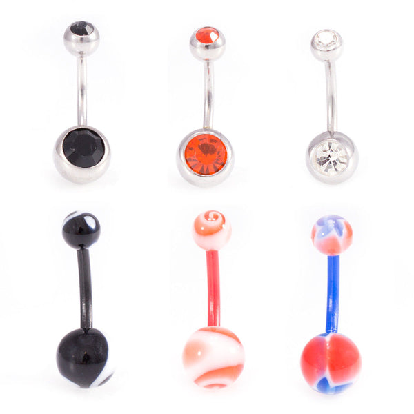 Belly Button Ring Package of 6 Navel Ring. 3 Surgical Steel with CZ and 3 Flexi