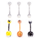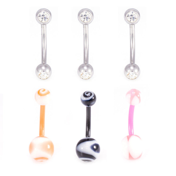 Belly Button Ring Package of 6 Navel Ring 3 with CZ Gems and a 3 Flexi