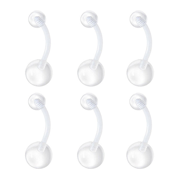 Pack of 6Flexi Clear Retainer Navel Ring 14G