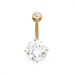 Belly Button Ring with Big Cubic Zirconia Rose Gold IP 14g