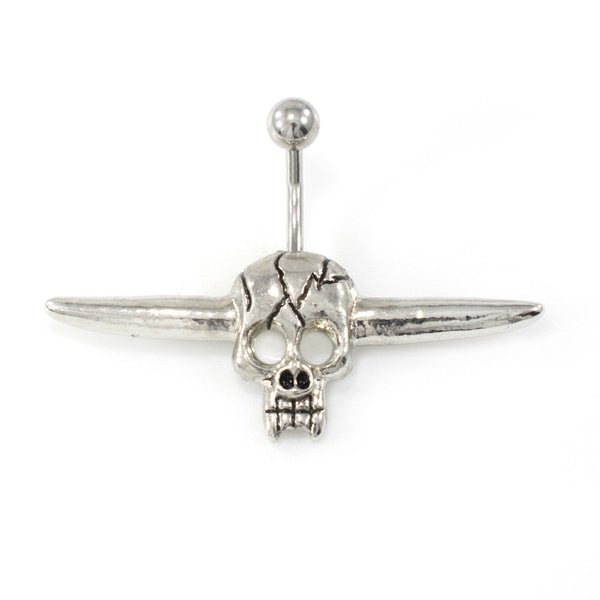 Belly Button Ring with Bull Skull Vintage Design 14g