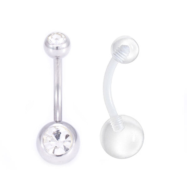 Belly Button Ring with Cubic Zirconia 14G. FREE Clear Flexi Navel Ring. Made of Surgical Steel