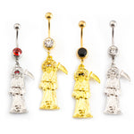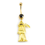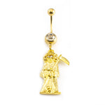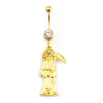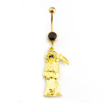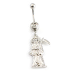 Belly Button Ring with Grim Reaper Dangle Design 14G Surgical Steel