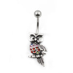 Belly Button Ring with Owl Design and multiple Cubic Zirconia Gems.