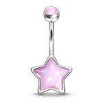 Belly Button Ring with Star Shaped Illuminating Stone and Illuminating Stone 14g