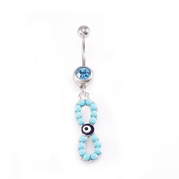 Belly Button Rings Infinite Love Dangle with Evil Eye Dangle Design and Aqua Cz