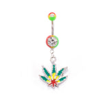 Belly Button Rings Marijuana Pot Leaf Dangle 14G Belly Button Ring 1.6mm Navel Rastafari Flag Colors