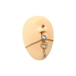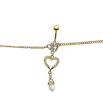 Belly Chain Button Navel Ring Surgical Steel Gold Plated Waist Belly Chain with Heart CZ Jewels Dangle Charm 14 Gauge
