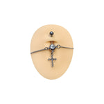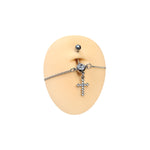 Belly Chain Navel Ring Surgical Steel Waist with CZ Paved Cross Dangle 14G