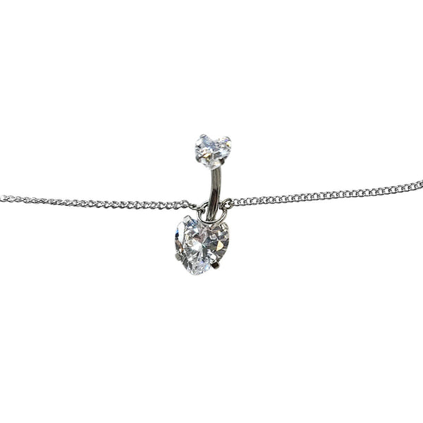 Belly Chain Navel Ring Surgical Steel Waist Belly Chain with Double Heart CZ Non-Dangle 14 Gauge Dangling CZ charms hang from the chain. Chain can be removed from belly ring....