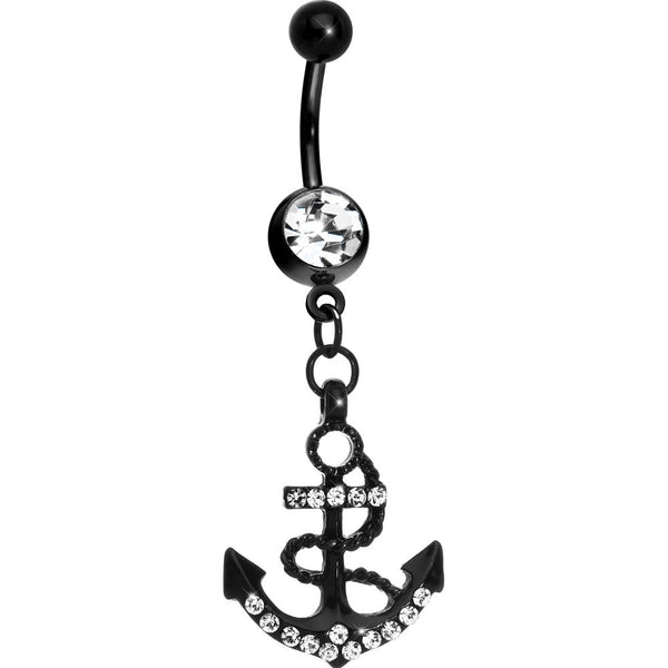 Belly Navel Ring Black Anodized Titanium Anchor Dangle with CZ Gems