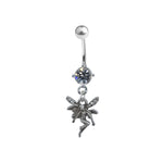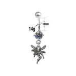 Belly Navel Ring Dangle Fairy Faerie with Prong Setting CZ Gem 14g