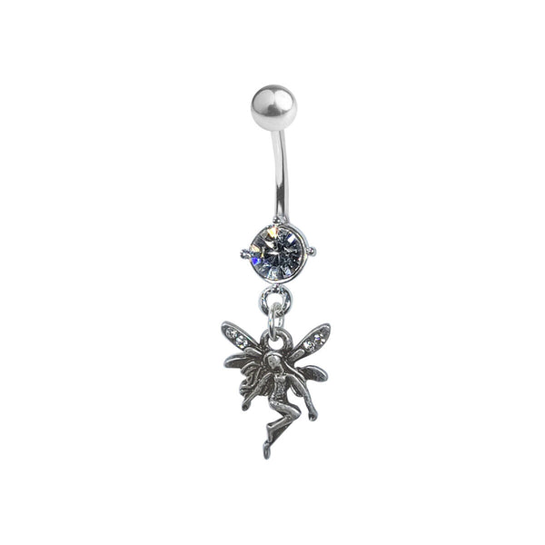 Belly Navel Ring Dangle Fairy Faerie with Prong Setting CZ Gem 14g Externally threaded. 14g 10mm - 3/8" shaft Charm is about 18mm long We are a U.S. based seller...