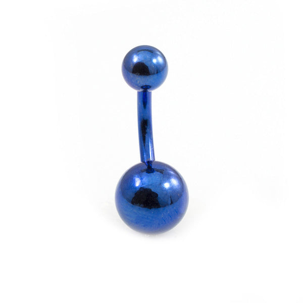 Belly Ring 14g Blue Anodized Titanium Description Belly Ring 14g Blue Anodized Titanium Measurement: 14g (1.6 mm), 3/8" (10mm) Length, 5mm top Ball size, 8 mm Bottom Ball This Belly...