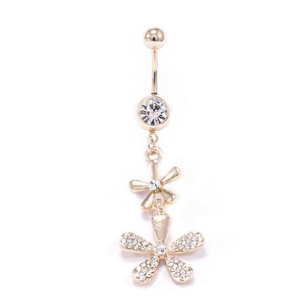 BodyJewelryOnline Double Flower Gold IP Design 14ga Dangle Belly Button Ring
