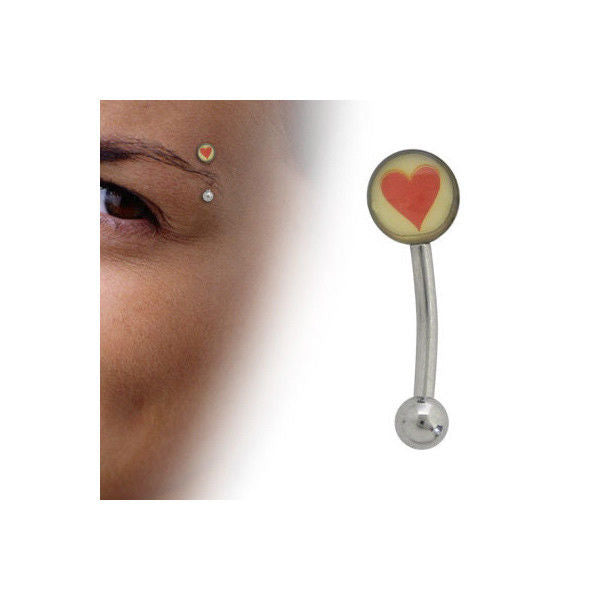 Curved Barbell 16G Eyebrow Ring with Red Heart Logo Design